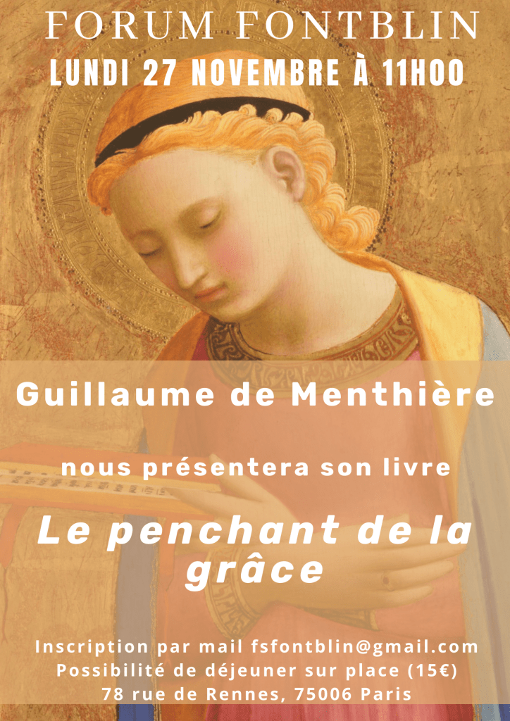 Notre prochaine matinée théologique aura lieu le 27 novembre avec l’abbé Guillaume de Menthière qui nous présentera son dernier livre, « Le penchant de la grâce ».