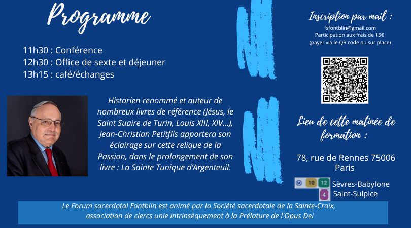 La Sainte Tunique d’Argenteuil, conférence de Jean-Christian Petitfils le 26 mai Laisser une réponse La Sainte Tunique d’ArgenteuilTélécharger Partager : Partager sur WhatsApp(ouvre dans une nouvelle fenêtre) WhatsApp Imprimer(ouvre dans une nouvelle fenêtre) Imprimer Partager sur X(ouvre dans une nouvelle fenêtre) X Articles similaires